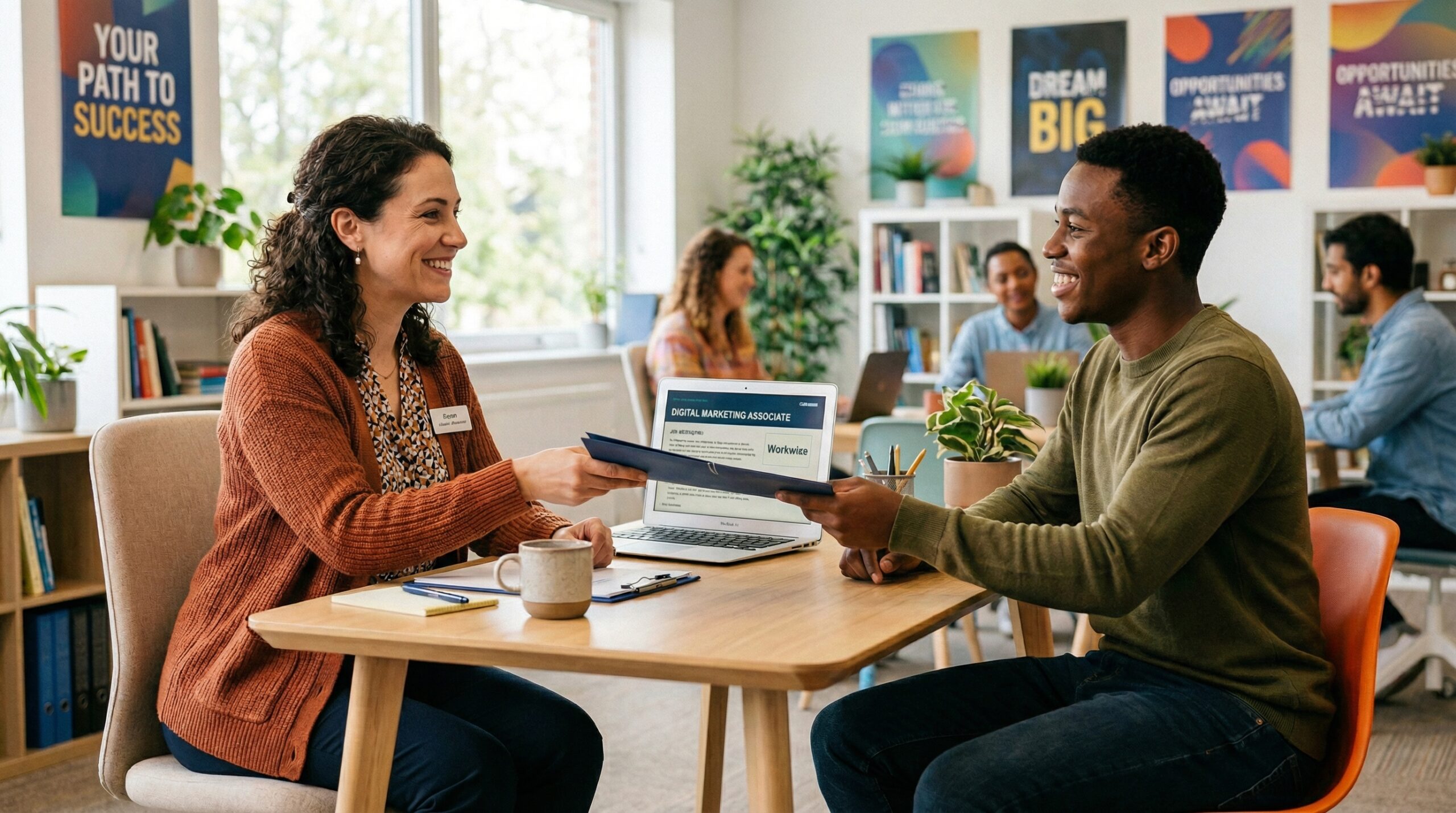 Wir begleiten dich individuell und ganzheitlich – von der richtigen Bewerbungsstrategie über ein individuelles Profiling bis hin zur passenden Jobvermittlung. Unser Team aus erfahrenen Coaches hilft dir, deine Stärken zu erkennen, dich optimal zu positionieren und den passenden Job zu finden. Alles flexibel – persönlich an einem unserer Standorte oder ganz bequem online.